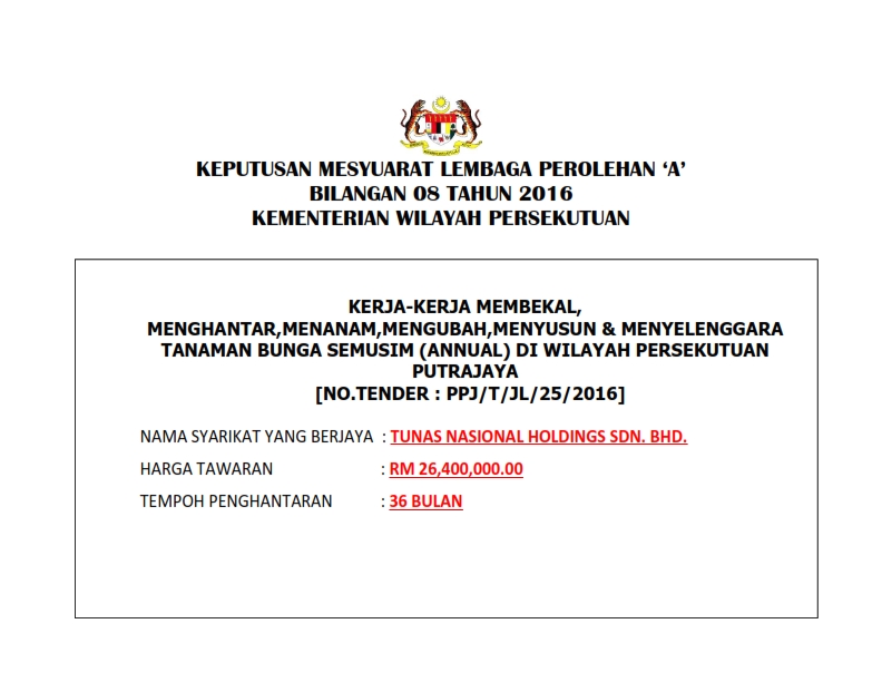» » Keputusan : Mesyuarat Lembaga Perolehan A Bil.8 Tahun 2016