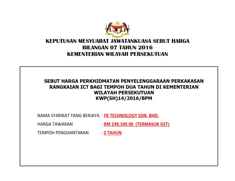 » » Keputusan : Mesyuarat Jawatankuasa Sebut Harga Bil.7 Tahun 2016
